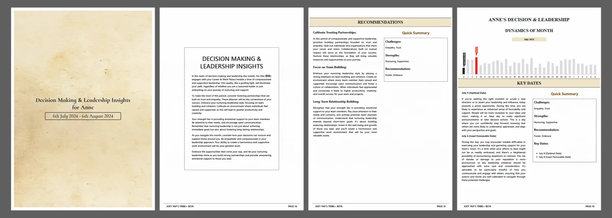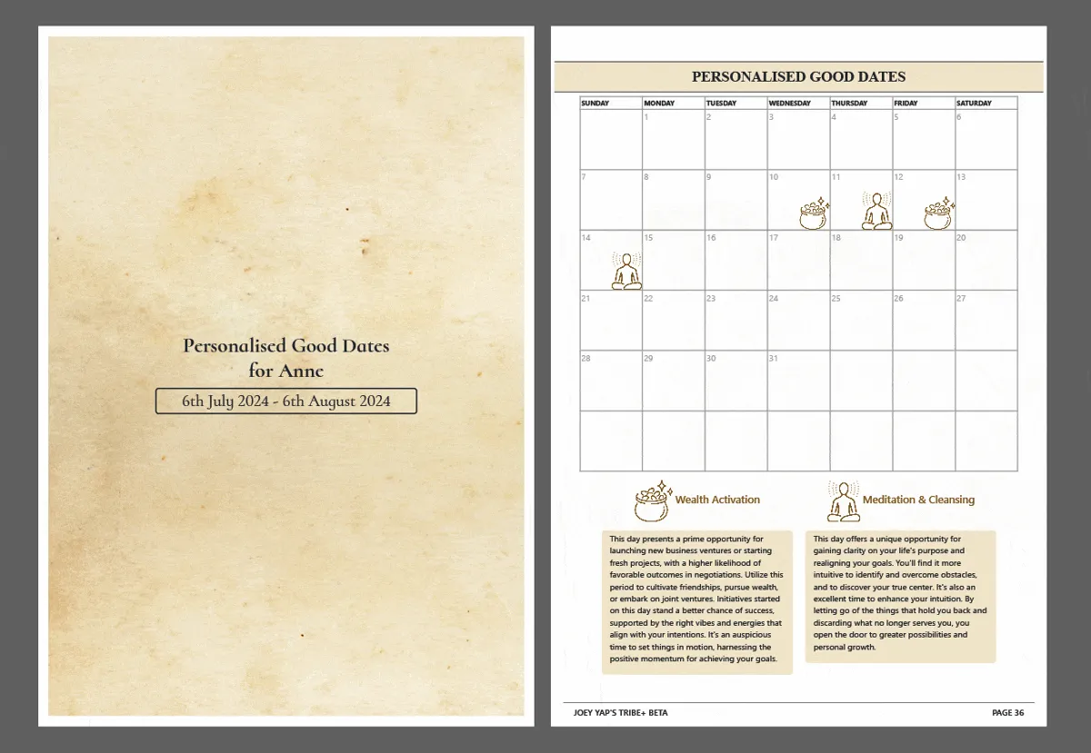 This section identifies the most auspicious dates for important activities and decisions in your life, from career moves to personal milestones.