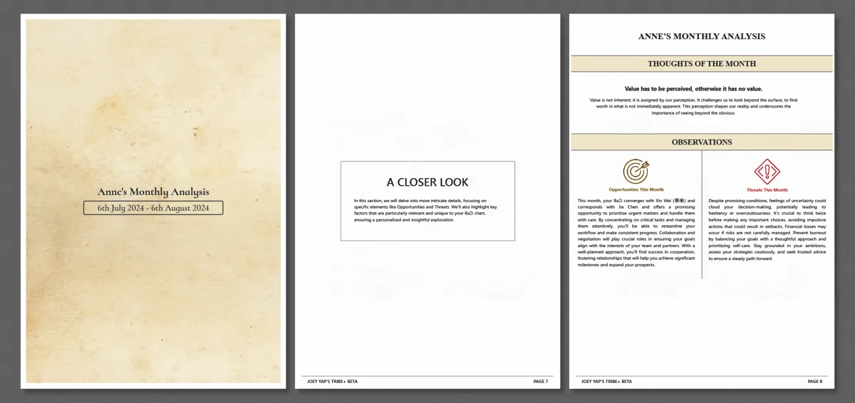 Whether you’re looking to capitalize on upcoming trends or navigate potential challenges, the Monthly Analysis offers practical advice tailored to your unique chart. With its straightforward format and insightful graphics, staying ahead of the curve has never been easier.