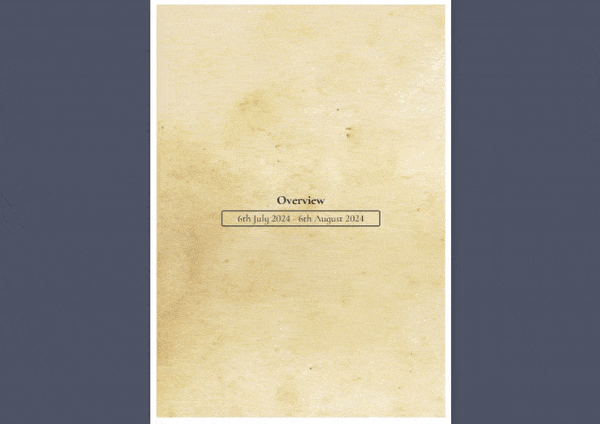 The overview puts everything neatly into one place right at the start with beautiful graphics, your charts and a descriptive one-pager.