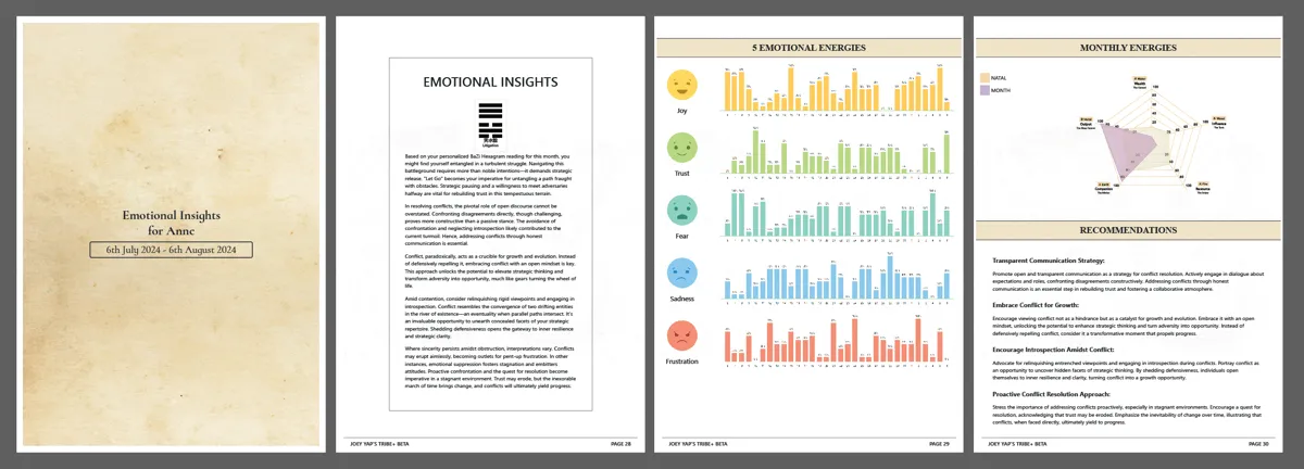 Emotions are perhaps the most recognized form of human energy. This section provides an in-depth look at your emotional landscape, helping you identify patterns and triggers.
